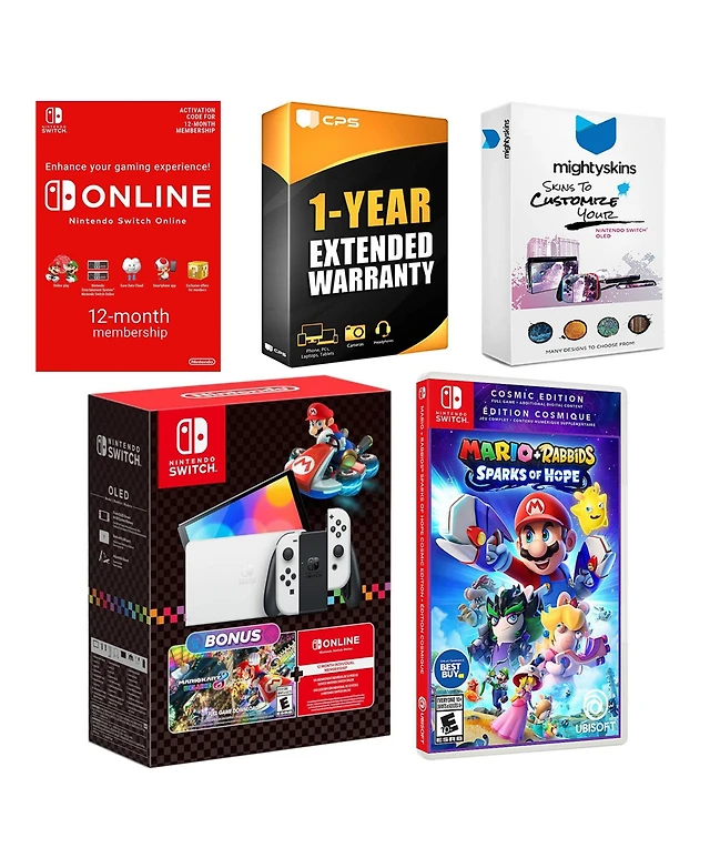 Nintendo Switch Oled Console Mario Kart 8 Deluxe Bundle with MightySkins Console and Controller Skin Voucher and Year Cps Extended Warranty