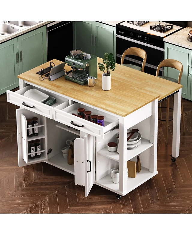 Streamdale 47" Extendable Kitchen Island with Storage, Power Outlet