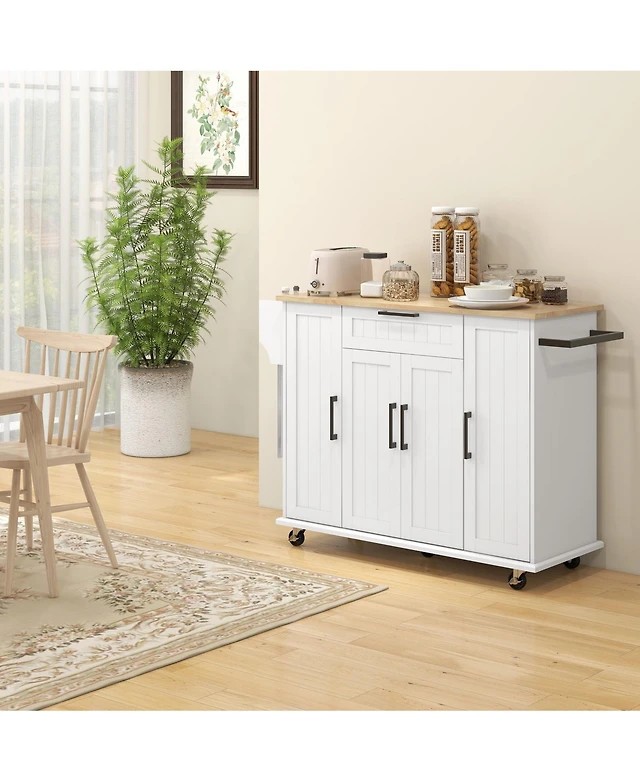 Streamdale Furniture 47.2" Farmhouse Kitchen Island with Drop Leaf & Storage, Rolling Cart