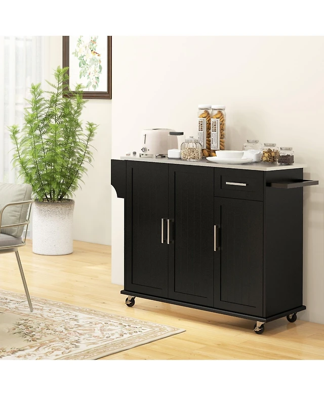 Outsunny Grill Cart, Kitchen Island with Storage Cabinets,