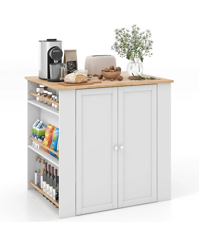 Gymax Kitchen Island on Wheels Rolling Kitchen Cart w/ Drawer & Storage Cabinet Spice Rack