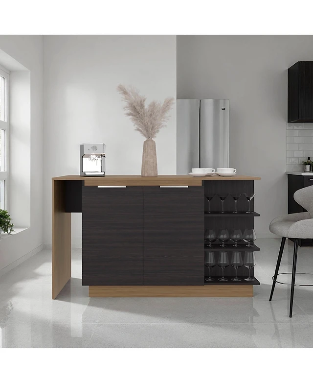 Volenca 4-Tier Mini Bar Kitchen Island with Footrest and Wine Rack, Storage Cart