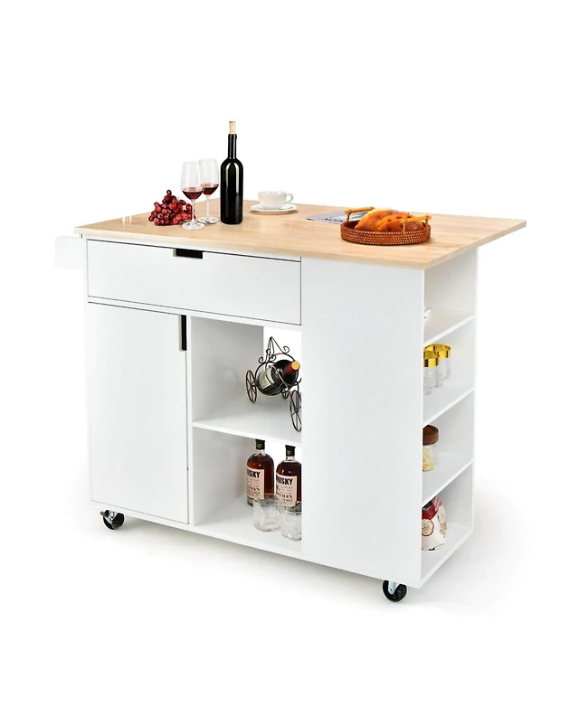 Drop-Leaf Kitchen Island with Rubber Wood Top