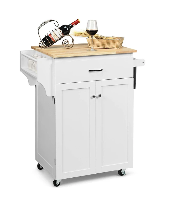 Sugift Rolling Kitchen Island with Spice Rack and Adjustable Shelf