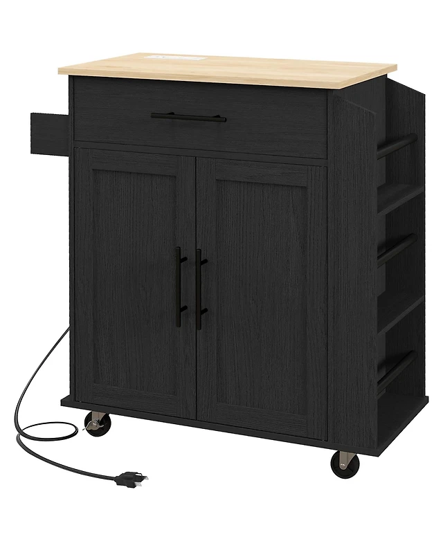 Homcom Kitchen Island with Storage and Power Outlets, Rolling, White