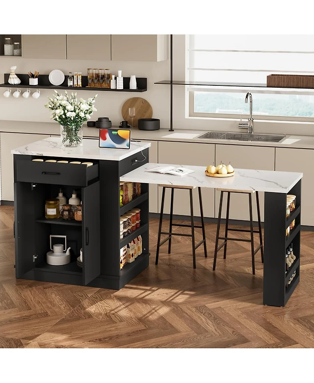 Slickblue Rolling Kitchen Island Cart with Storage Cabinet, Drawer, and Drop Leaf Table