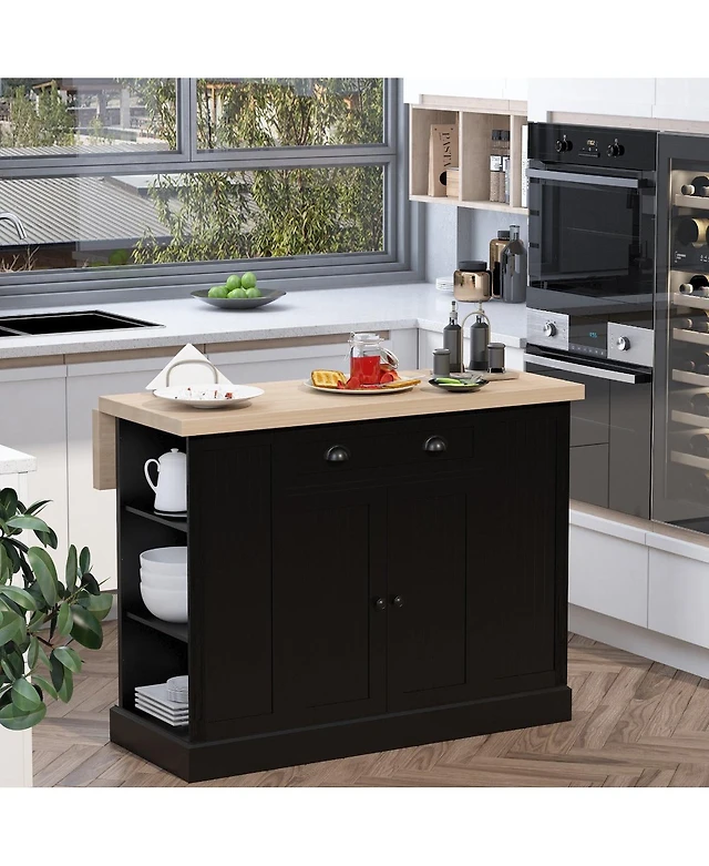 Gymax Drop-Leaf Kitchen Island Cart w/ Power Outlet Wine Rack Glass Holder Drawer