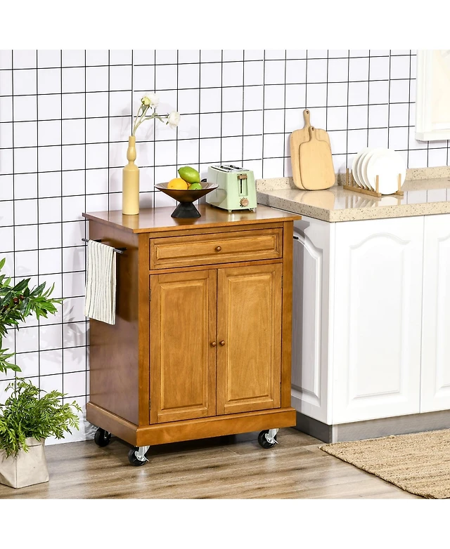 Volenca Kitchen Island Cart, 35.4" Rolling Storage Cart with Solid Wood Top, Drawer & Cabinet