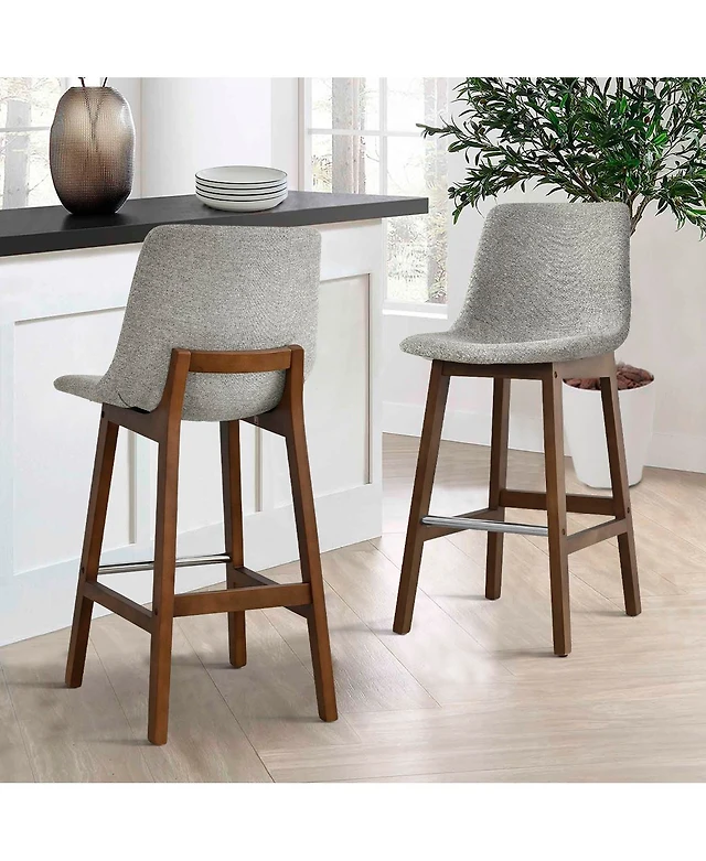 Set of 2 Upholstered Bar Stools with Solid Wood Legs, Modern Counter Height Chairs for Kitchen Island, Bar, or Dining Room-Maison Boucle