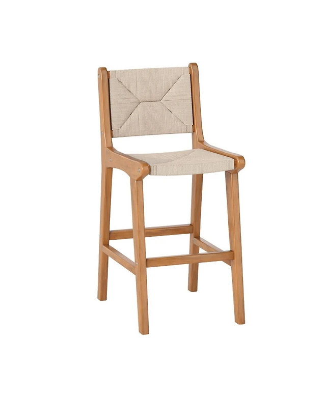 Gouun Woven Paper Rope Counter Height Outdoor Bar Stool with Teak Wood Frame