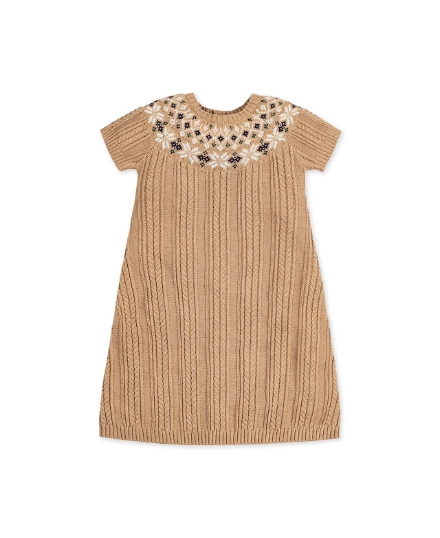 Hope & Henry Toddler Girls Short Sleeve Fair Isle Cable Sweater Dress