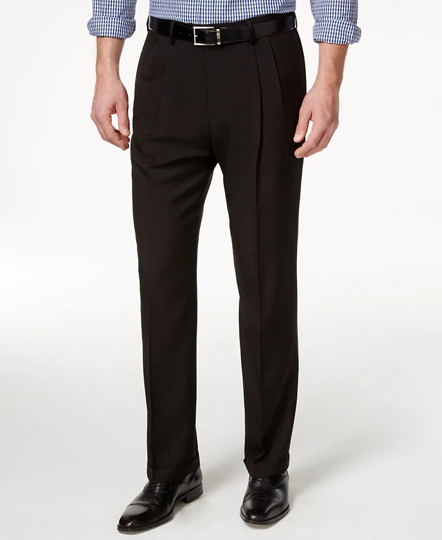 Haggar Men's Eclo Stria Classic Fit Pleated Hidden Expandable Waistband Dress Pants