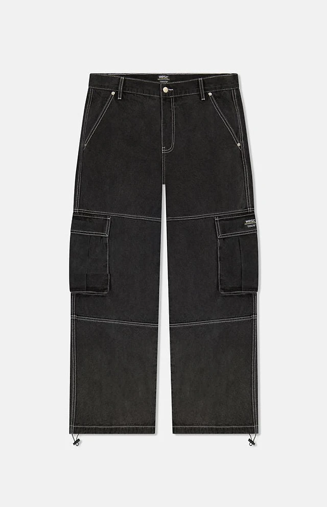 WeSC Black Wash Baggy Denim Cargo Pants
