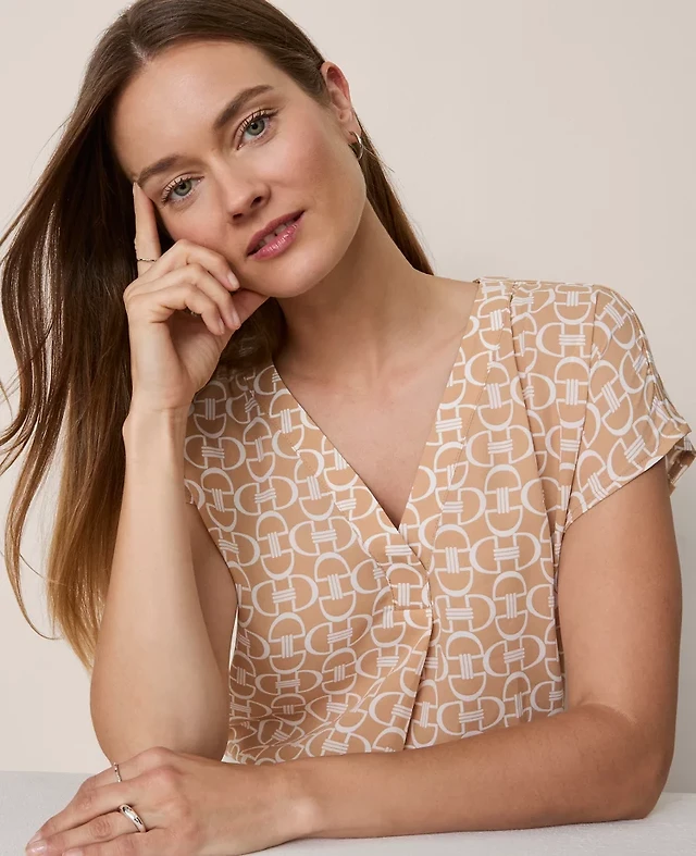 Ann Taylor Chain Link Mixed Media Top Cafe Au Lait Women's