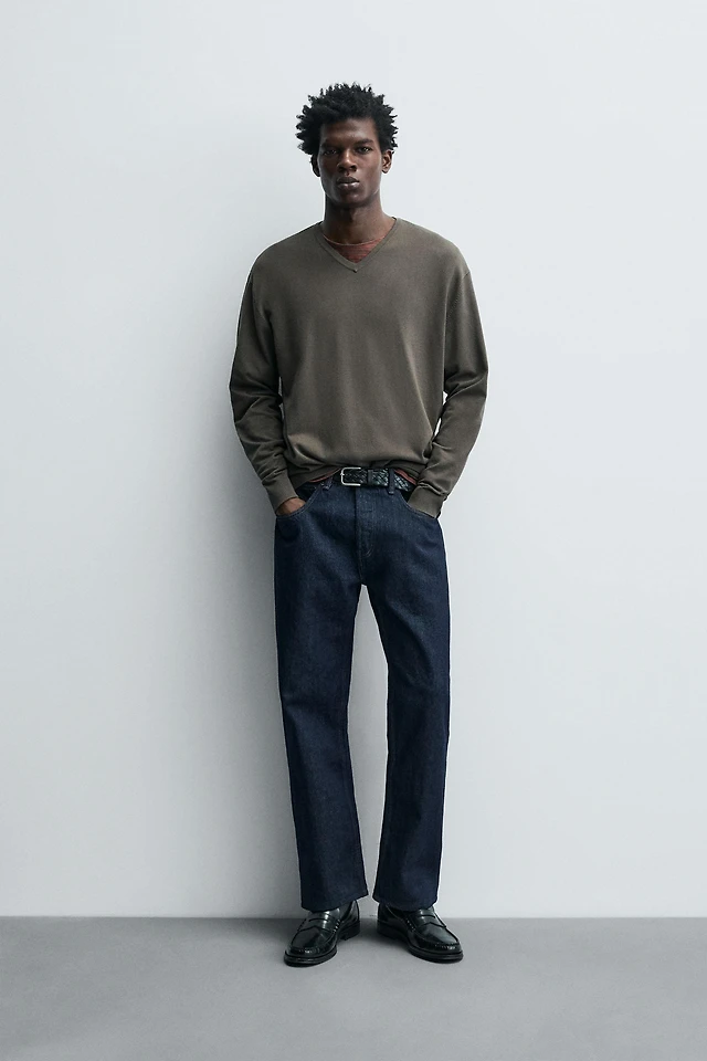 Relaxed Tipped V-Neck Sweater