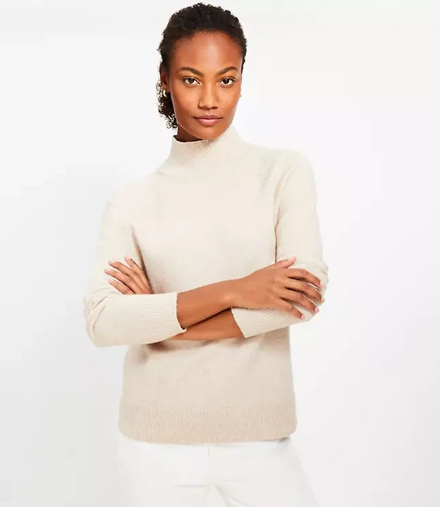 Hope & Henry Girls Organic Long Sleeve Mock Neck Sweater with Rosettes
