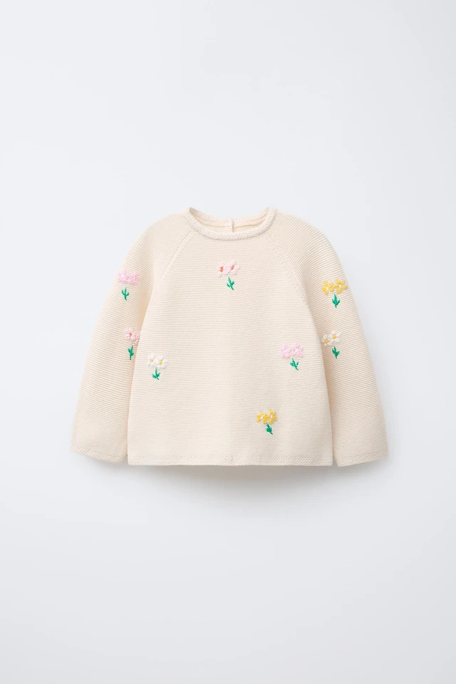 EMBROIDERED FLORAL LINKS KNIT SWEATER
