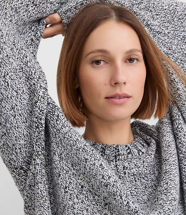 Lands' End Women's Fuzzy Turtleneck Lantern Sleeve Jacquard Sweater