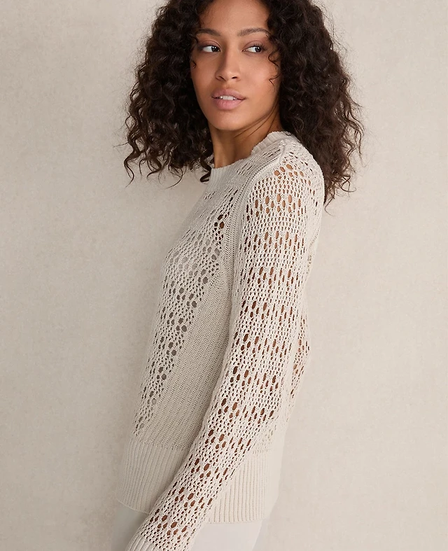 Ann Taylor Haven Well Within Organic Cotton Linen Open Stitch Crewneck Sweater Women's