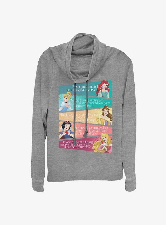 Disney Princesses Mottos And Quotes Cowl Neck Long-Sleeve Womens Top