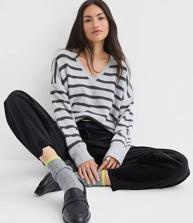 Cable & Gauge Women's V-Neck Rib Tunic Sweater