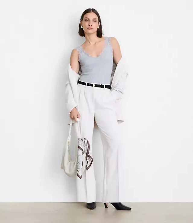 Ann Taylor Petite Lace Trim V-Neck Tank Top Black Women's