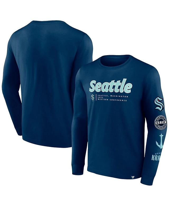 Men's Fanatics Deep Sea Blue Seattle Kraken Strike the Goal Long Sleeve T-shirt