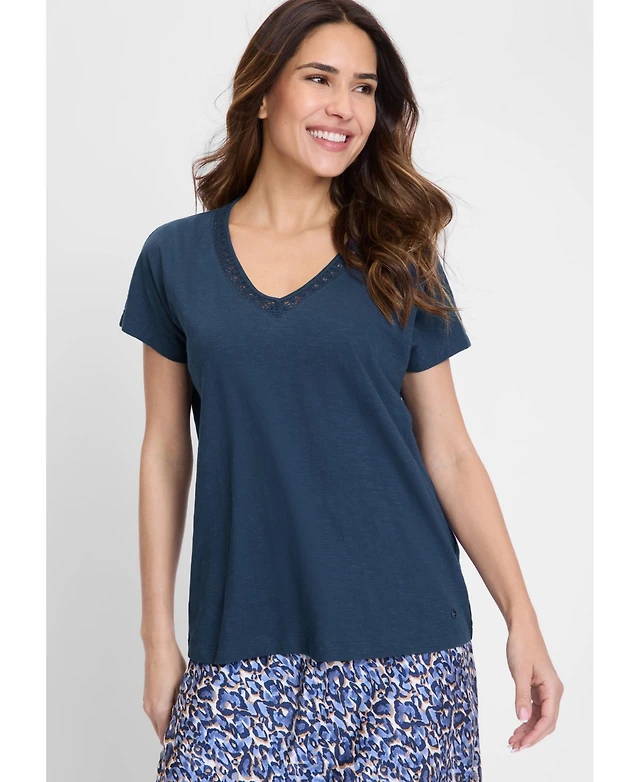 Olsen Women's Lace Trim V-Neck T-Shirt