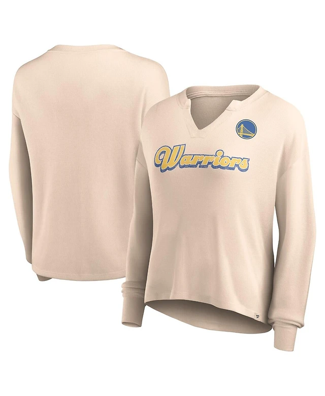 Women's Fanatics Tan Distressed Golden State Warriors Go For It Long Sleeve Notch Neck T-shirt
