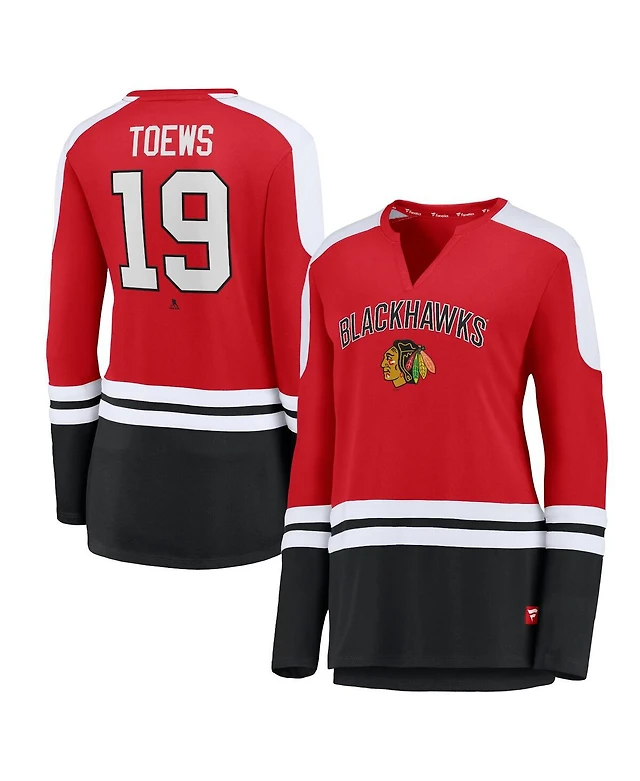 Women's Fanatics Jonathan Toews Red and Black Chicago Blackhawks Power Player Long Sleeve Notch Neck T-shirt