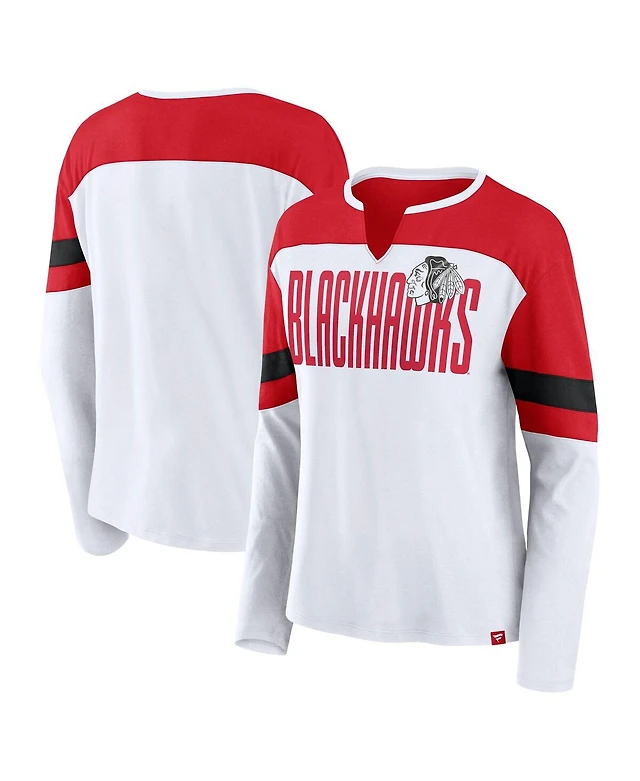 Fanatics Women's White/Red Chicago Blackhawks Frozen Long Sleeve Notch Neck T-Shirt