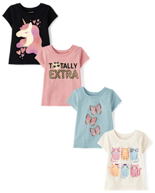 Baby And Toddler Girls Animal Graphic Tee 5-Pack