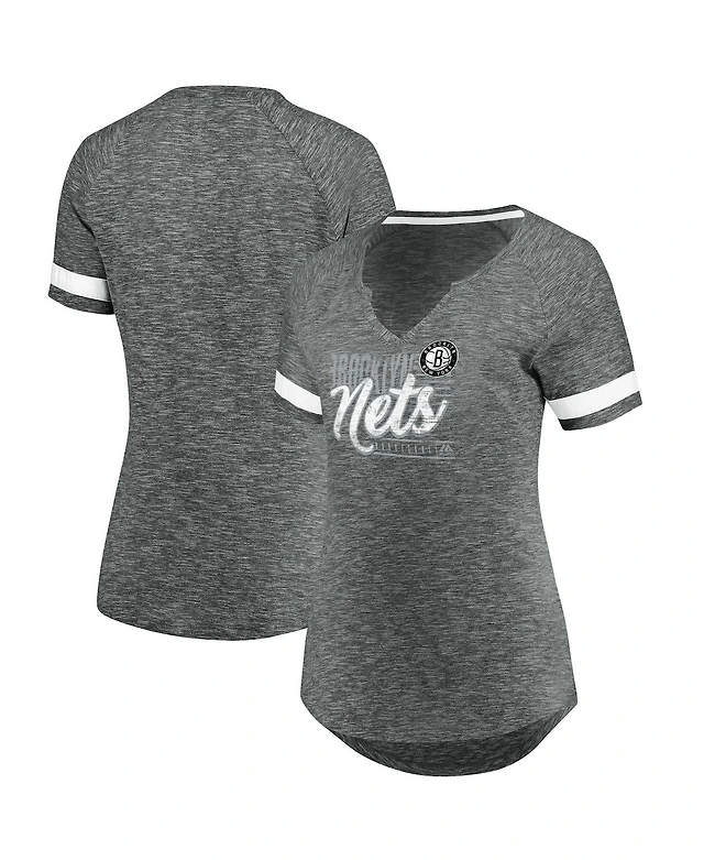 Women's Fanatics Gray and White Brooklyn Nets Showtime Winning with Pride Notch Neck T-shirt