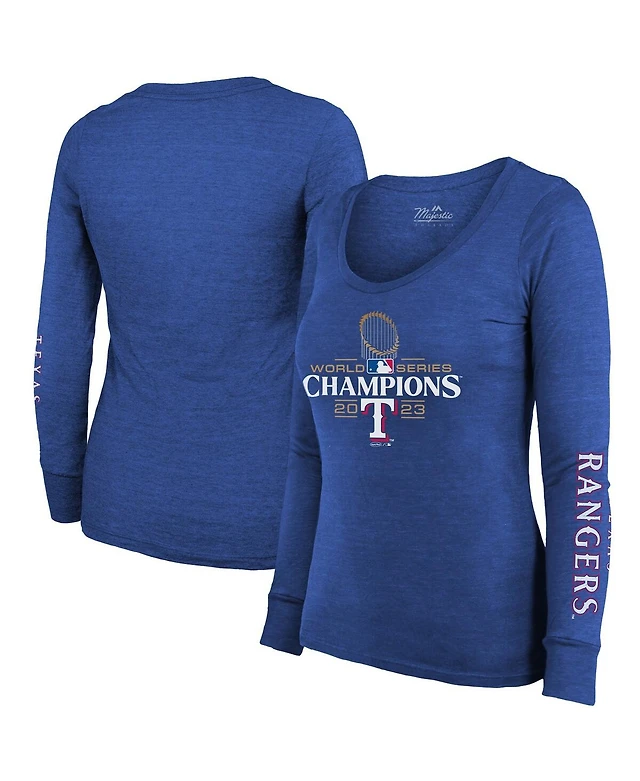 Women's Majestic Threads Royal Texas Rangers 2023 World Series Champions Tri-Blend Long Sleeve Scoop Neck T-shirt