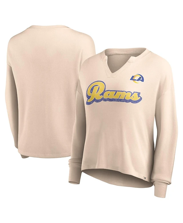 Women's Fanatics Tan Distressed New England Patriots Go For It Notch Neck Waffle Knit Lightweight Long Sleeve T-shirt