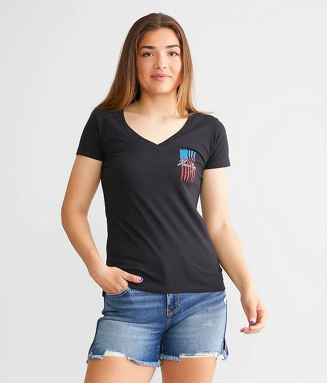 Wear by Erin Andrews Women's Deep Sea Black/White Seattle Kraken Football T-Shirt