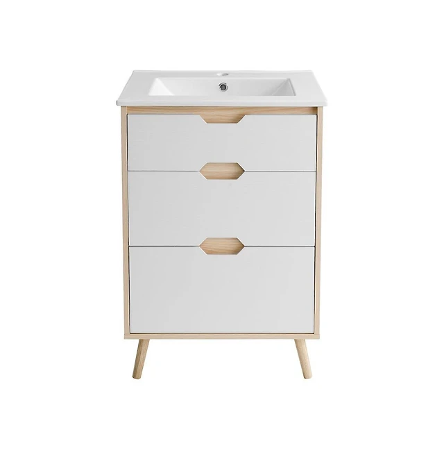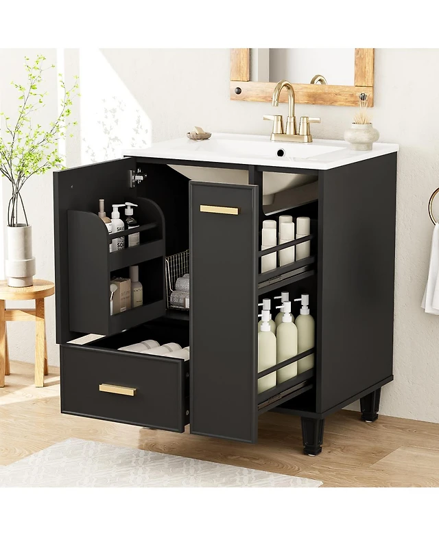 Sillysis 24" Bathroom Vanity with Ceramic Sink, Deep Drawer and Pull Out Basket