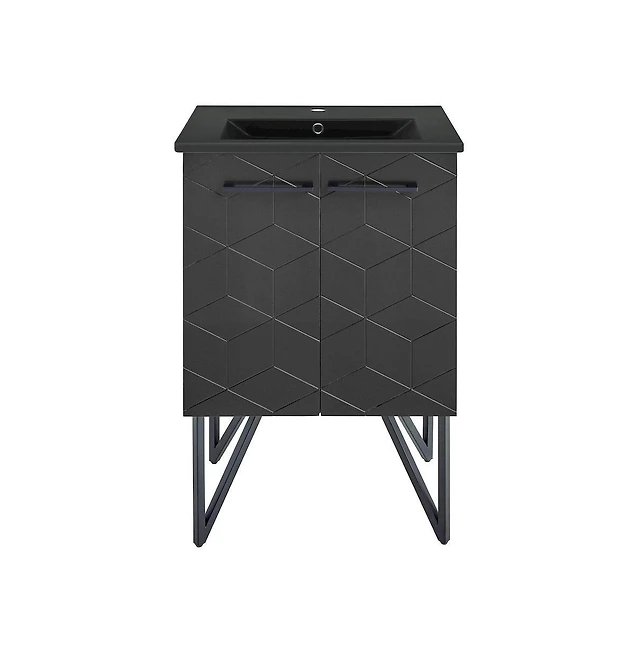Annecy 24 in. Phantom Black Bathroom Vanity With White, 3-Hole Ceramic Sink Top
