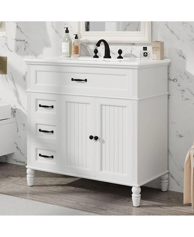 Casainc 36" Bathroom Vanity with Sink Combo, Cabinet Drawers, Solid Frame and Mdf Board