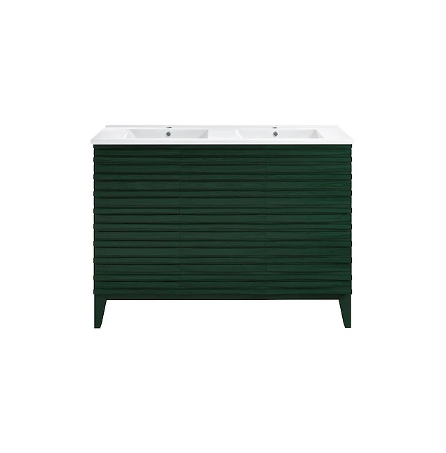 Swiss Madison 48" Freestanding Bathroom Vanity in Green Oak with Black Double Basin Sink Top