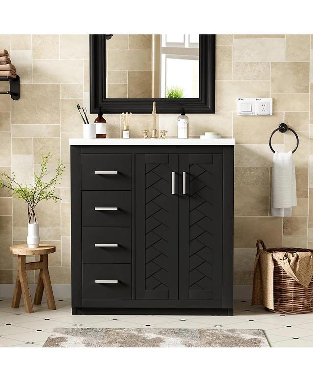 Boyel Living 36" Bathroom Vanity with Sink, 4 Drawers & Soft-Close Door, Freestanding Storage Cabinet