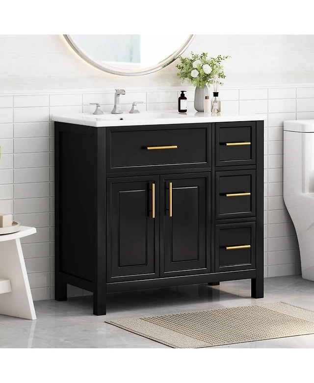 Sillysis 36" Bathroom Vanity with Ceramic Sink, Flip-Out Drawer, Soft Close Doors & Storage Drawers for Modern Bathrooms