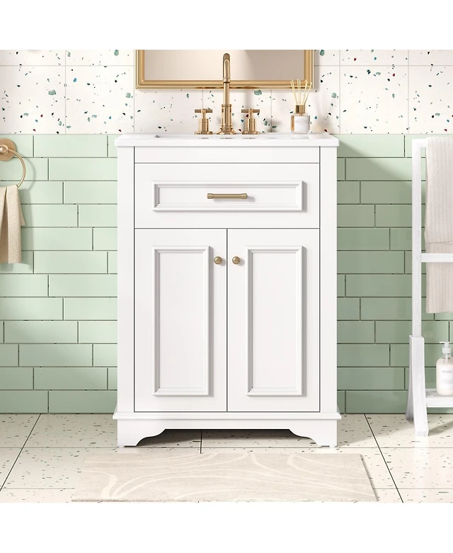 Sillysis 24 Bathroom Vanity with Ceramic Sink, Modern Freestanding Solid Wood Mdf Cabinet, 3 Drawers Soft Close Door for Small Spaces