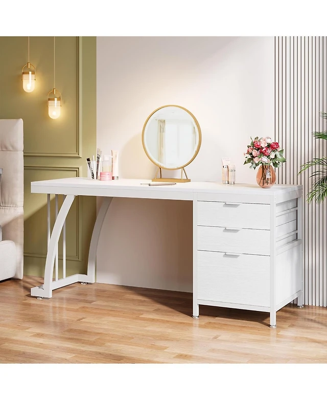 Tribesigns 47" Makeup Vanity Desk with 5 Drawers, Modern Vanity Desk with Glass Top, White Computer Desk Dressing Table for Bedroom (Without Mirror)