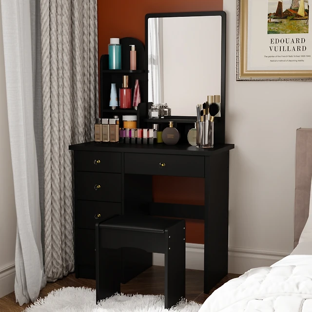 Adjustable 360° Swivel Storage Vanity Stool with Removable Tray