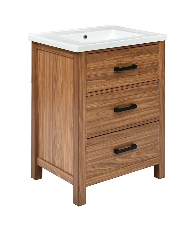 Casainc 24" Freestanding Vanity with Ceramic Sink, Cabinet with 3 Drawers