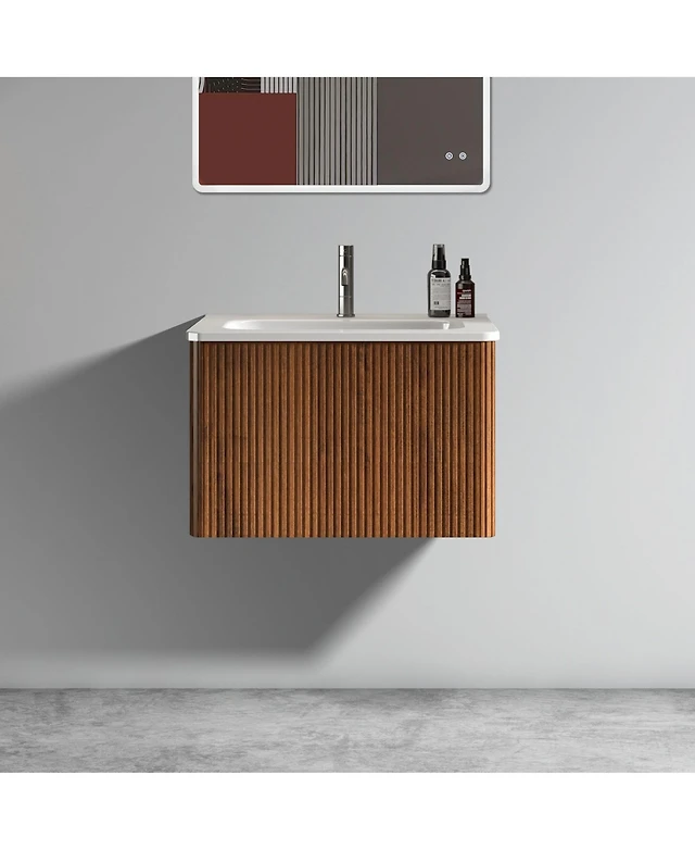 Casainc Etna 24" Floating Vanity With Ceramic Sink and Striped Oak Finish, Pre-Assembled