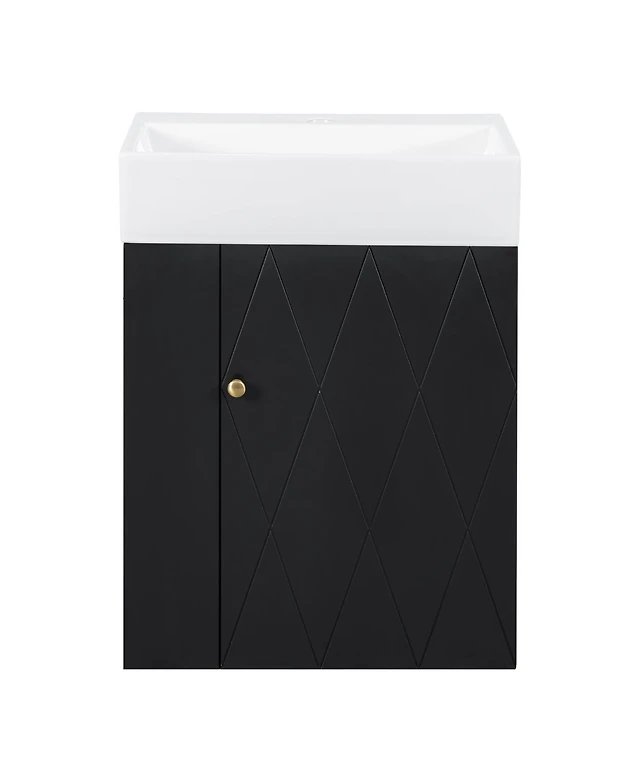 Casainc Bathroom Vanity with Ceramic Sink Diamond Pattern Door and Gold Handle