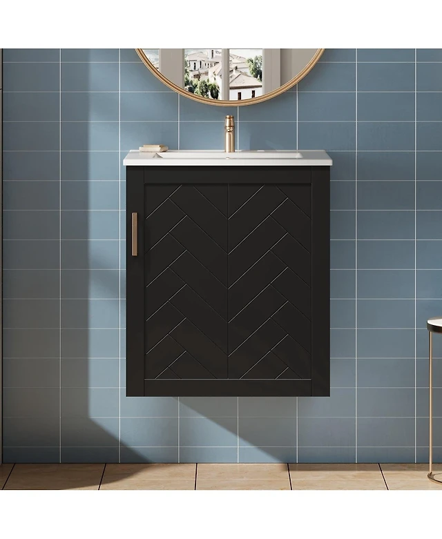 Wall-Mounted Bathroom Vanity with Ceramic Sink & Soft-Close Doors