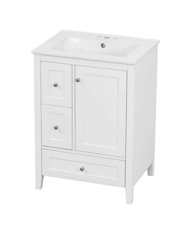 Sillysis 24" Modern Bathroom Vanity with Ceramic Sink, Soft Close Cabinet & Ample Storage for Small Spaces